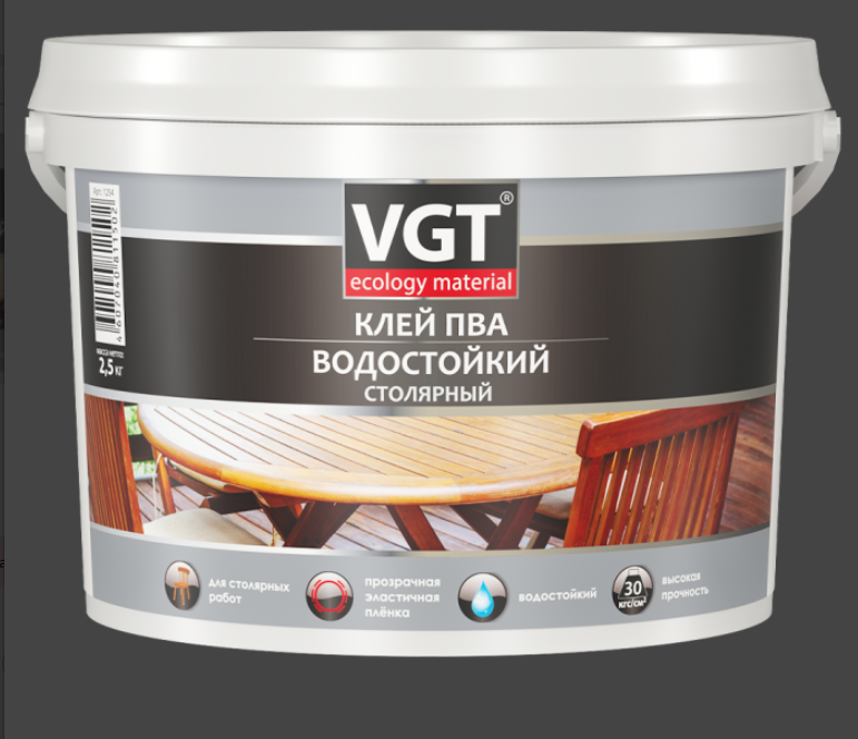 Клей ПВА VGT водостойкий столярный D3 2,5кг (12шт) ПОД ЗАКАЗ