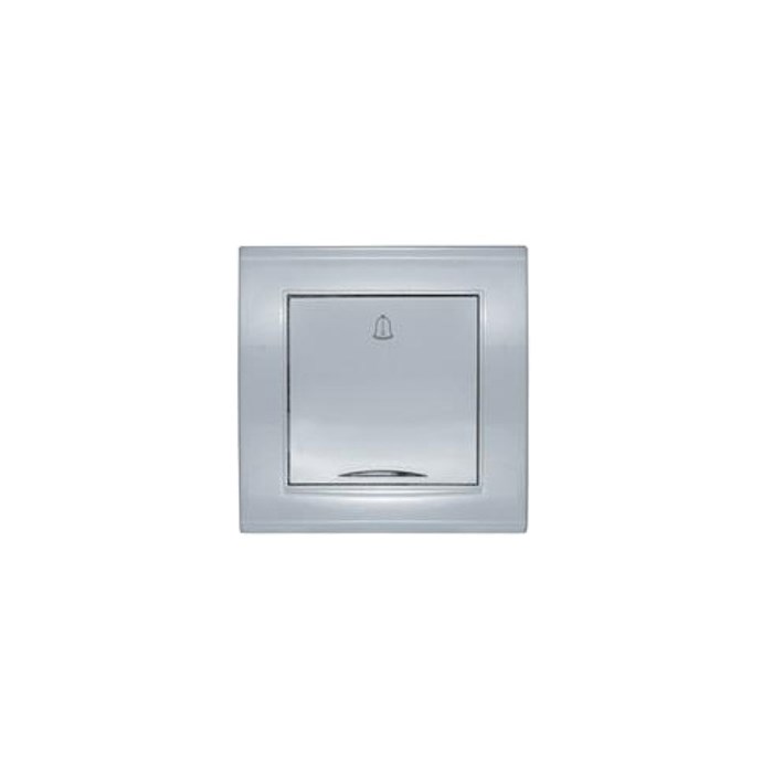 Кнопка звонка с символом и подсветкой "UNIVersal"Бриллиант"с/у,10А,220В,серебро(евросл,