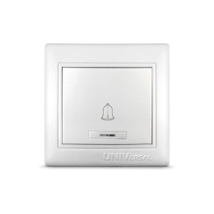 Кнопка звонка с символом и подсветкой "UNIVersal" серия "Севиль", с/у, 10А, 220В, белая (еврослот)