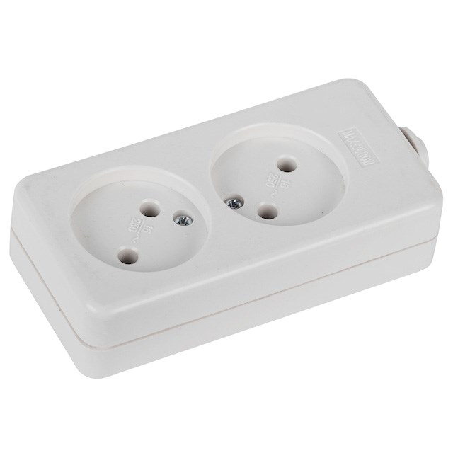 Колодка ЭРА без заземления. Максимальная мощность 10 А/2200 Вт. Для кабеля сечением до 2x1мм2.