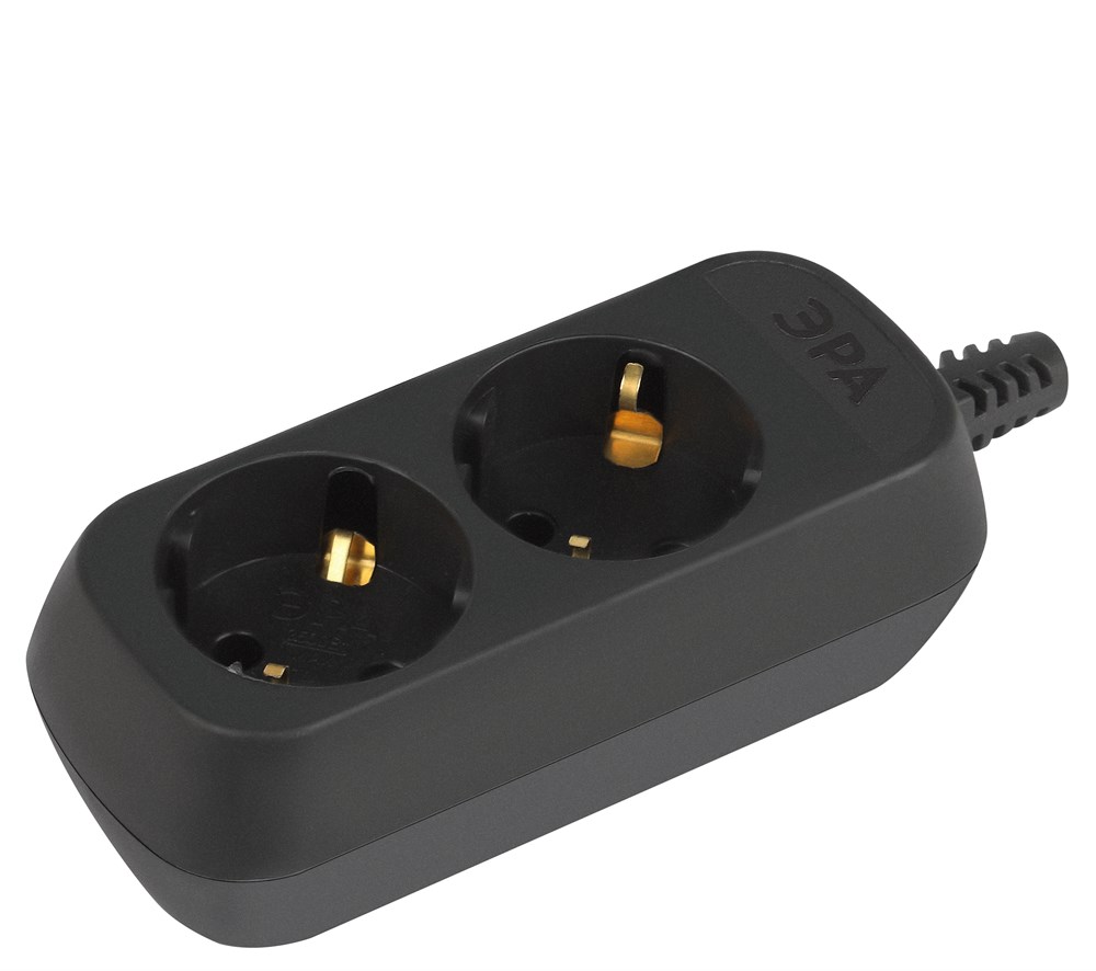 Колодка ЭРА KX-2e-B на 2 розетки, с заземлением, черная. Максимальная мощность - 16 А/3500 Вт. Для кабеля до 3х1,5мм2