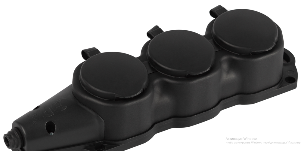 Каучуковая колодка ЭРА KX-3e-B-IP44 3 гнезда, с заземлением, черная, для подключения кабеля (без разбора корпуса). Съёмная крышка. IP44-защита от пыли и влаги. Максимальная мощность 16А/3500Вт. Для кабеля сечением до 3x2,5мм2.