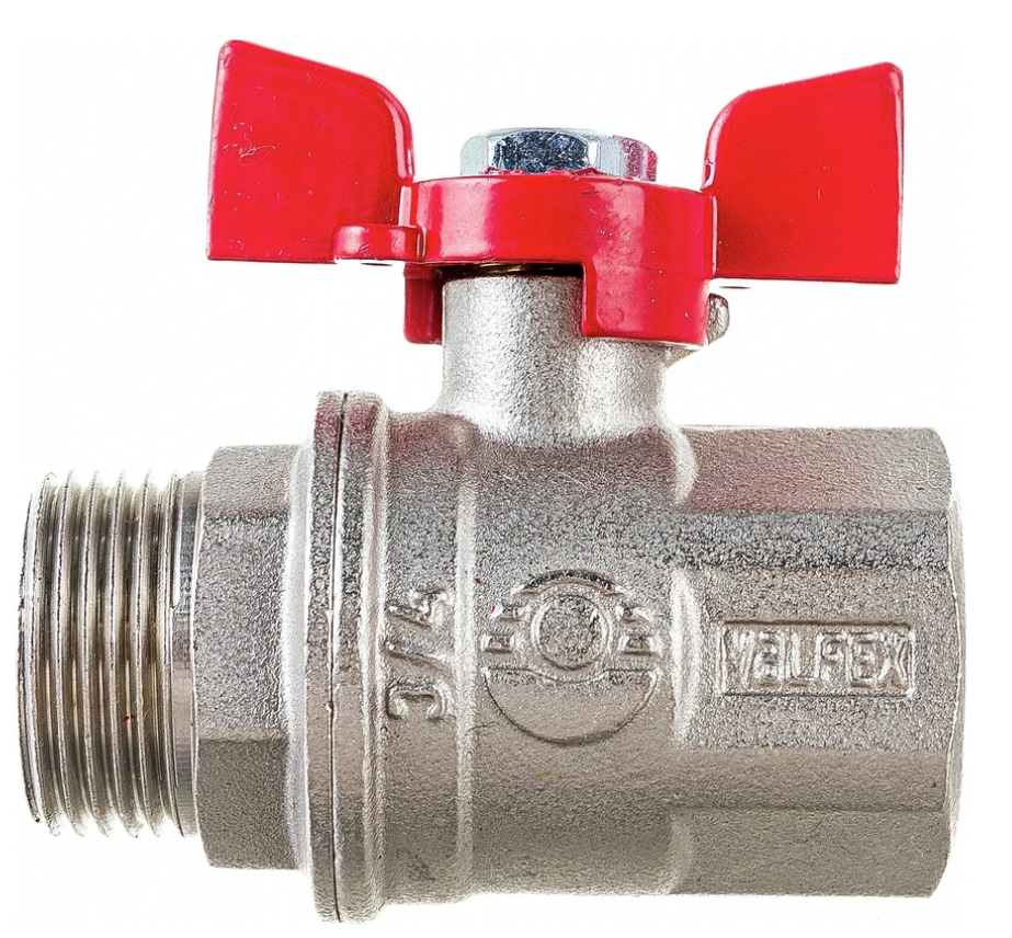 Шаровой кран VALFEX PREMIUM для воды, 3/4" ВР/НР, бабочка VF.218.NB1.034.PREMIUM предназначен для применения в качестве запорной арматуры в составе водопроводов хозяйственно-питьевого назначения, горячей воды, пара, сжатого воздуха и в технологических трубопроводах, транспортирующих жидкости, не агрессивные к материалам крана.