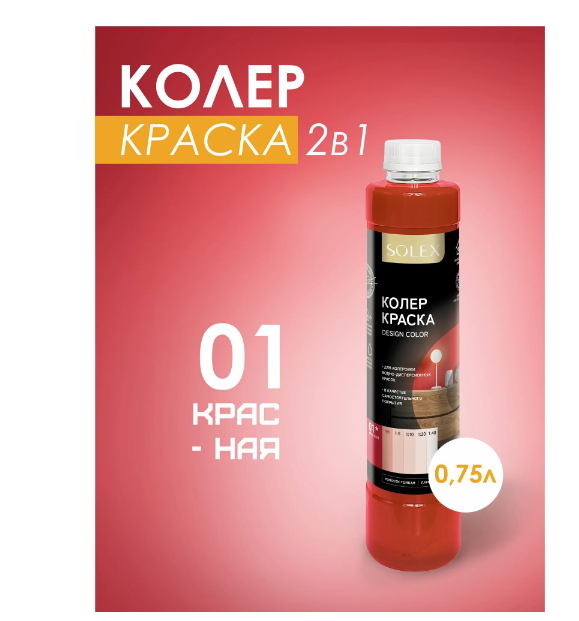 Краска колеровочная SOLEX 01 красный 0,75л бутылка ПЭТ(уп6)
