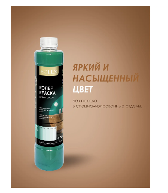 Краска колеровочная SOLEX 05 изумрудно-зеленая 0,75л бутылка ПЭТ(уп6)