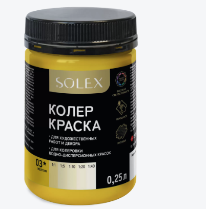 Колер для акриловой краски SOLEX позволит вам создать желаемый цвет, который идеально сочетается с вашим интерьером или экстерьером.