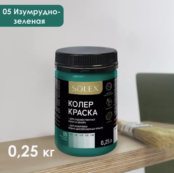 Колер для акриловой краски SOLEX позволит вам создать желаемый цвет, который идеально сочетается с вашим интерьером или экстерьером.