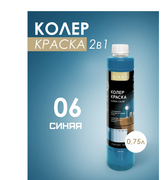 Краска колеровочная SOLEX 06 синий 0,75л бутылка ПЭТ(уп6)