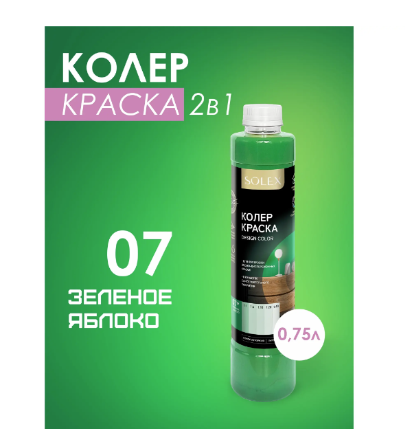 Краска колеровочная SOLEX 07 зеленое яблоко 0,75л бутылка ПЭТ(уп6)