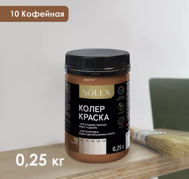 Краска колеровочная SOLEX 10 кофейный 0,25л бутылка ПЭТ(уп15)
