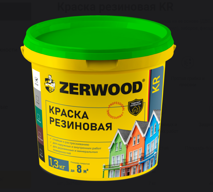 Краска резиновая ZERWOOD KR зеленый 1,3 кг ведро (уп 12)