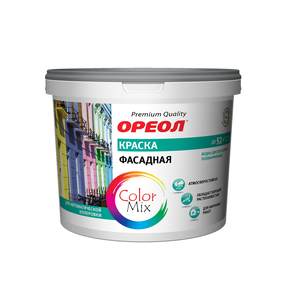 Краска ВД "ОРЕОЛ" фасадная атмосферостойкая полиакриловая (база С) 4,5л 5,81кг