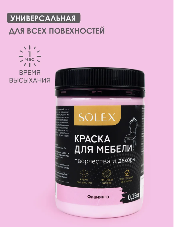 Краска ВД Solex для мебели 0,35кг фламинго ПЭТ(уп12)