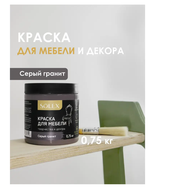 Краска ВД Solex для мебели 0,75кг серый гранит ПЭТ(уп6)