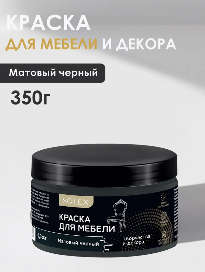 Краска ВД Solex для мебели 0,35кг матовая черная ПЭТ(уп18)