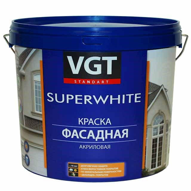 Краска VGT Супербелая фасадная, база С (автоколерование) ВД-АК-1180, 6кг