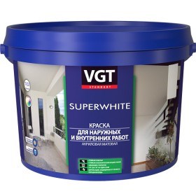 Краска VGT Супербелая ВД-АК-1180 для нар/внутр работ моющаяся 7кг