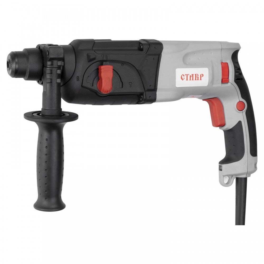 Перфоратор Ставр ПЭГ-780 работает в трех режимах: сверление, сверление с ударом и долбление. Функция реверса представлена поворотом угольных щеток, что способствует их более длительному сроку службы, а также равной мощности при разностороннем вращении. Дополнительная рукоять помогает уверенно держать инструмент в руках. Предусмотрена защитная муфта, которая препятствует проворачиванию инструмента в руках оператора. Модель оснащен встроенной светодиодной подсветкой, что позволяет работать при плохом освещении или в темное время суток.