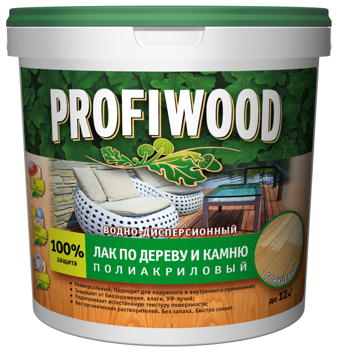 Лак PROFIWOOD по дереву и камню ВД глянцевый 0,9кг/0,8л (6шт/уп) СПЕЦЦЕНА