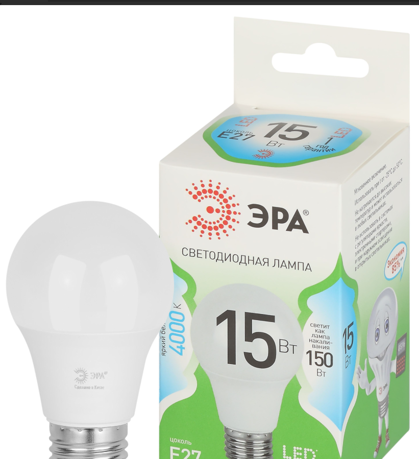 Светодиодная лампа ЭРА LED A60-15W-840-E27 GL серии Green Line — эффективное решение для основного освещения. Лампочка Е27 мощностью 15 Вт излучает нейтральный белый свет (4000K) без мерцания. Классическая колба A60 (груша) и стандартный цоколь E27 делают её совместимой с люстрами, бра, настольными и напольными светильниками. Высота лампы: 108 мм. Светодиоды потребляют меньше электроэнергии и служат значительно дольше традиционных ламп накаливания: до 30 000 часов. Работает от сети 220 В, эквивалентна 80 Вт лампе накаливания. Светодиодные лампы ЭРА подходят для жилых и коммерческих помещений и обеспечивают стабильное освещение.