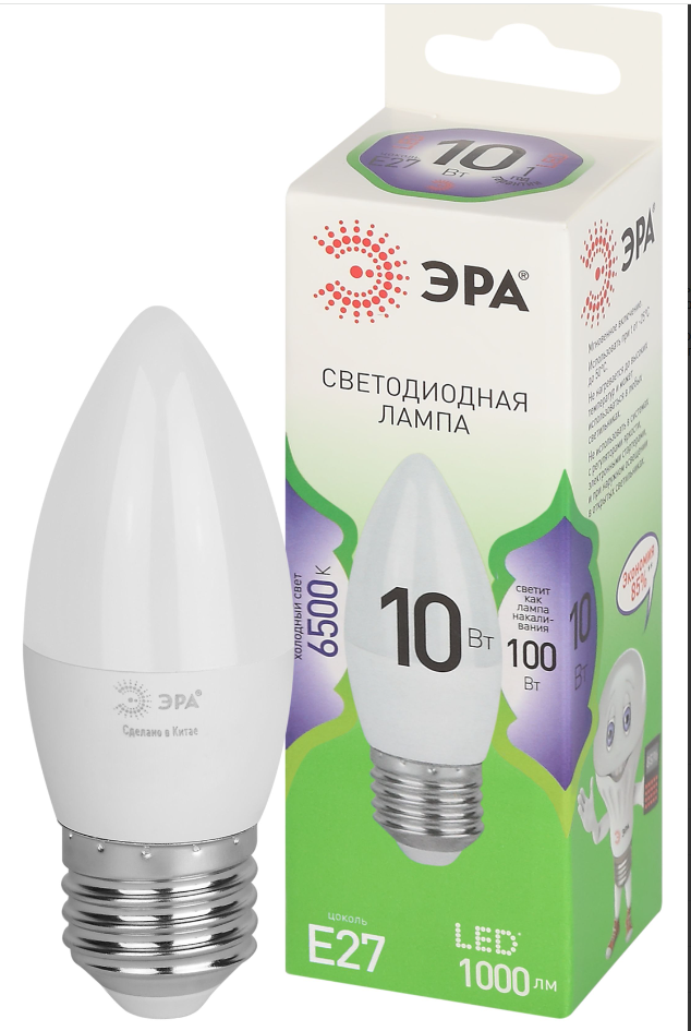 Светодиодная лампа ЭРА LED B35-10W-865-E27 GL серии Green Line — это яркий и экономичный источник света, заменяющий лампы накаливания. Лампочка с цоколем Е27 и мощностью 10 Вт излучает холодный белый свет (6500K) без мерцания. Элегантная форма B35 (свеча) и стандартный цоколь E27 позволяют использвать лампу в люстрах, бра, настольных и декоративных светильниках. Высота лампы: 100 мм. Работает от сети 220 В, эквивалентна 100 Вт лампе накаливания. Светодиодные лампы ЭРА потребляют минимум энергии и не нагреваются. Подходят для дома, гостиниц, ресторанов и коммерческих помещений, сочетая стиль и функциональность..