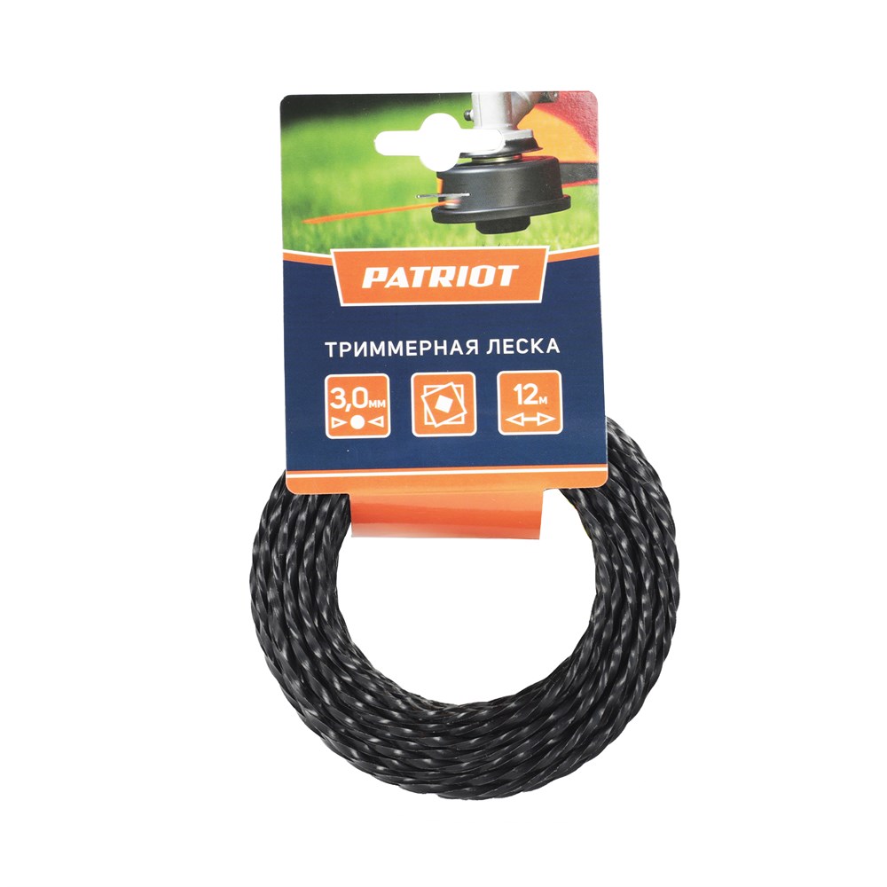 Леска PATRIOT D 3,0 мм L 12 м (скрученный квадрат, черный) 300-12-5, картонный подвес