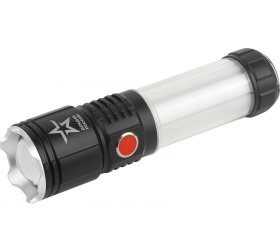 Ручка фонаря Армия России "Тайфун" светится белым и красным светом. Есть режим мерцания.