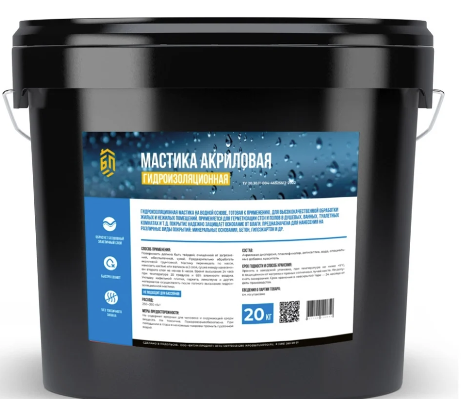 Мастика Акриловая Гидроизоляционная БИТУМ ПРОДУКТ 20кг ведро