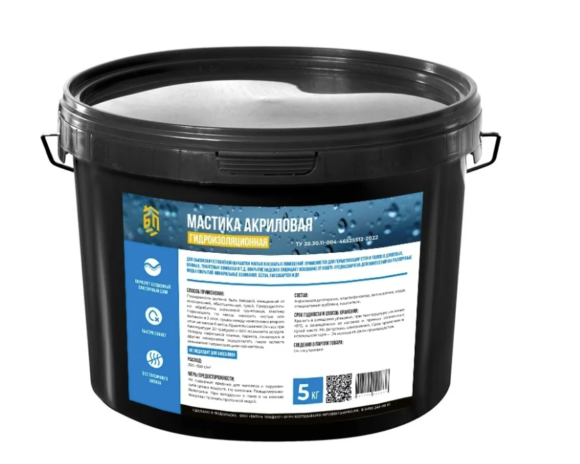 Мастика Акриловая Гидроизоляционная БИТУМ ПРОДУКТ 5кг ведро