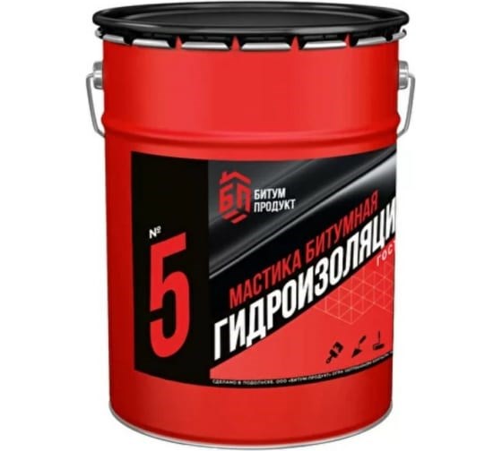 Битумная гидроизоляционная мастика БИТУМ ПРОДУКТ 20 кг BP-1 - Мастика битумная гидроизоляционная служит отличным решением для обмазочной гидроизоляции бетонных, стальных и деревянных строительных конструкций, расположенных ниже и выше уровня земли и имеющих прямой контакт с грунтом и влажной средой (различные виды фундамента, сваи, полы и стены подвалов и бойлерных).