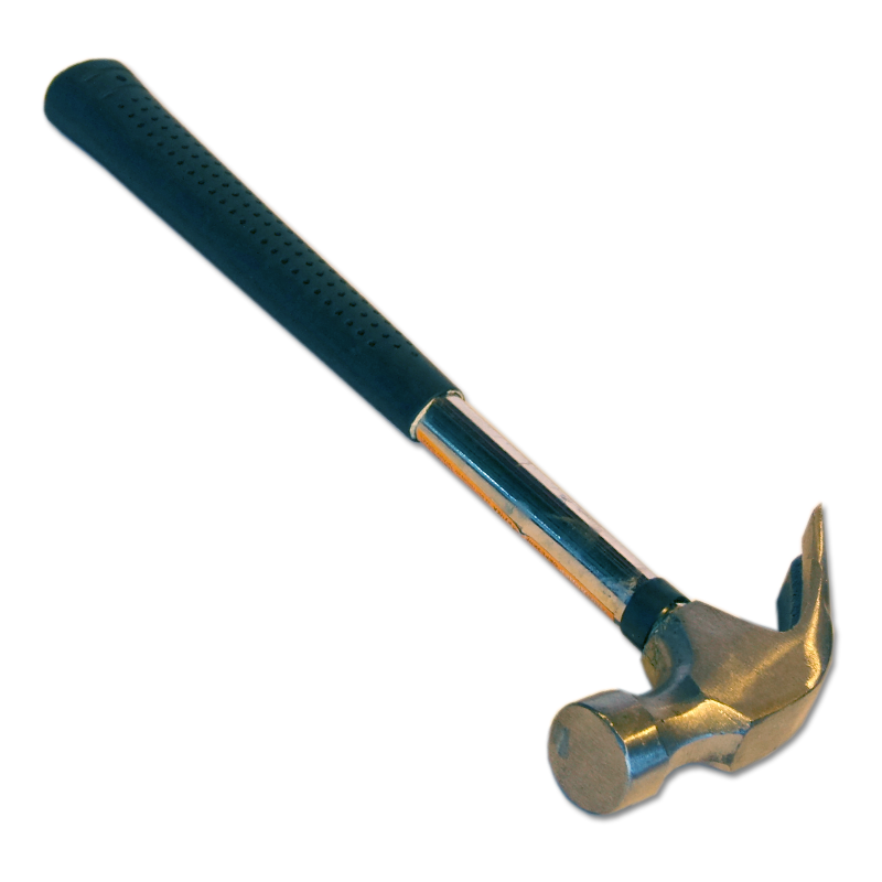 Рабочая часть молотка выполнена из стали. Круглый боек, вес инструмента 450 гр. Обрезиненная рукоятка способствует уменьшению вибрации, а так же препятствует скольжению. Используется в строительных, штукатурных, жестяных работах, а также для забивания и выдергивания гвоздей.