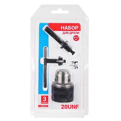 Набор для дрели 3пр. (патрон ключевой 13 мм, ключ для патрона, переходник) Ермак