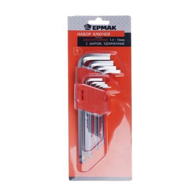 Набор ключей-шестигранников 1,5-10 мм с шаром удл. 9шт ЕРМАК
