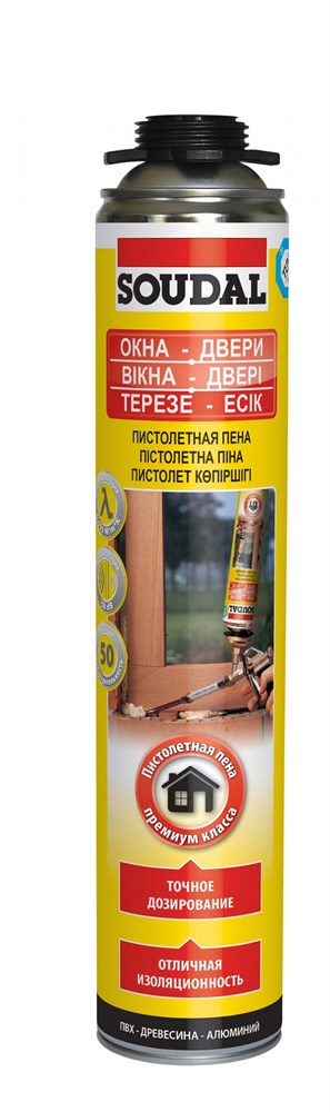 Пена профессиональная SOUDAL пистолетная, светло-желтый,летняя (+5) 750 мл (12шт/уп)