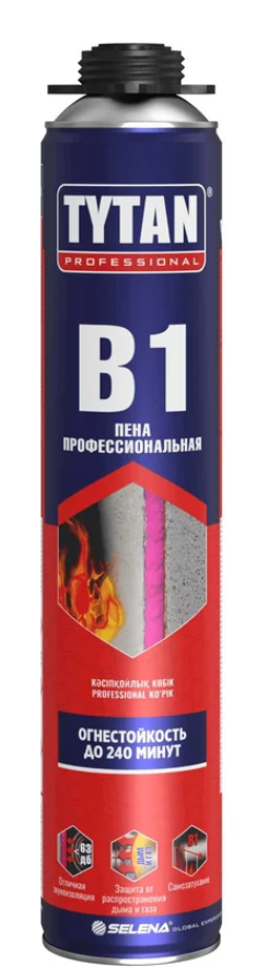 Профессиональная пена TYTAN PROFESSIONAL В1 огнеупорная 750мл 21154 21403 - высококачественная профессиональная полиуретановая пена для монтажа, изоляции и герметизации конструкций с повышенным классом огнестойкости - B1.