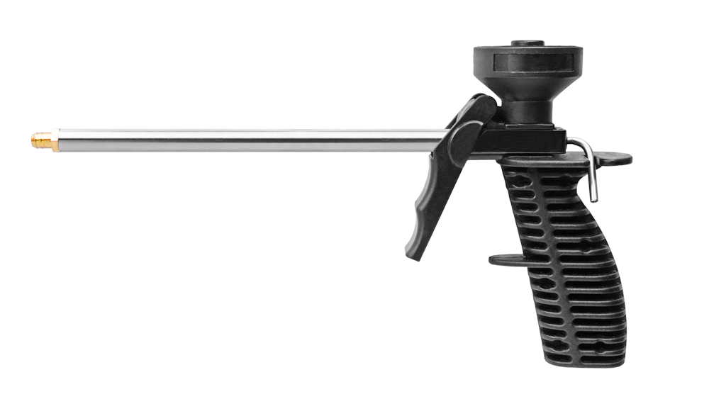 Самая доступная из традиционных моделей. Без дополнительных функций. А также самая легкая и одна из первых появившихся на рынке. Достойная замена трубочки на баллоне с пеной. Корпус с адаптером- цельнопластиковый, облегченный. Дуло-металлическое, короткое, без конфузора. Блокиратор подачи пены- затворный, без регулировки, расположе с тыльной стороны корпуса.