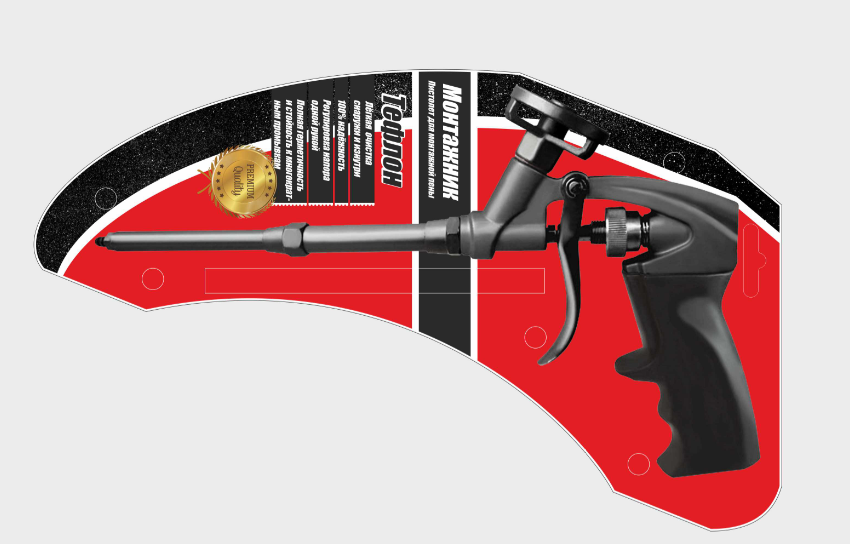 Тефлон – это пистолет с описанными выше достоинствами 600004 дополнительно имеющий покрытие всех деталей снаружи и изнутри настоящим тефлоном для лёгкости очистки застывшей пены снаружи и незастывшей изнутри. Имеет тефлоновый шарик и уплотнители внутри. Способен длительное время (не менее недели) храниться с накрученным баллоном, что не влияет на его работоспособность.