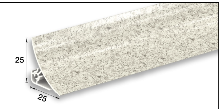Плинтус для столешницы «Идеал» – стильное и практичное решение для вашего дома. Плинтус для столешницы – современный продукт классической формы,сконструированный для декорирования стыков между стеной и поверхностью кухонных столешниц. Плотное прилегание мягкой кромки плинтуса к стене и столешнице обеспечивает защиту от попадания воды и грязи. Долговечность плинтуса обусловлена наличием специального покрытия, обеспечивающего высокую стойкость поверхности к истиранию и моющим средствам. Оптимально подобранная цветовая гамма способствует гармоничному применению с кухоннымистолешницами различных дизайнов. Может применятся также в ванных комнатах, так как устойчив к повышенной влажности и перепадам температур.