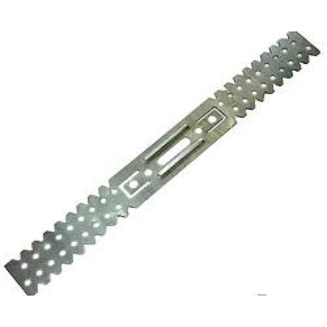 Подвес прямой – это конструкция, изготовленная из оцинкованных стальных лент, которые имеют толщину от 0.50 до 1.0 мм. Данный элемент используют при креплении (подвеске потолочной плиты) потолочного профиля к его основанию (конструкции). Подвес крепится к железобетонному потолку при помощи анкерных элементов, а к стене – дюбель-гвоздей. Затем к подвесу крепится профиль потолочный с помощью самонарезающих шурупов. Подвес прямой выпускается в двух размерах: короткий с габаритами 275*27*3 мм и длинный — 304*27*3 мм, при этом расчетная нагрузка на него составляет до 40 кг.