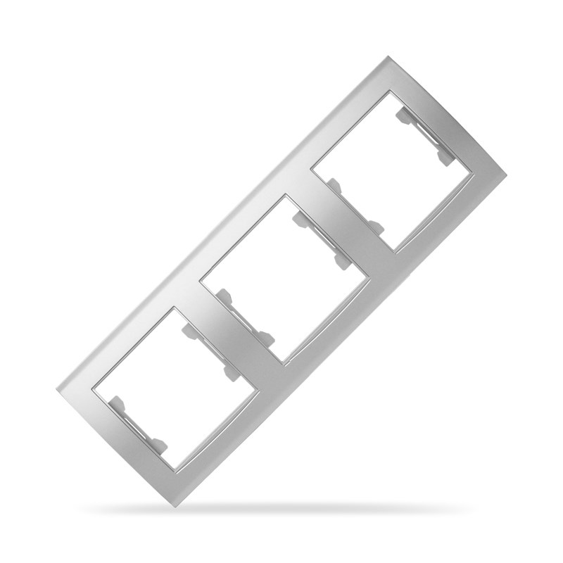 Рамка трехместная вертикальная "UNIVersal" серия "Бриллиант" серебро (еврослот)