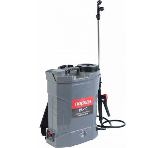 Аккумуляторный ранцевый распылитель Победа РА-10 755302606 используется для распыления воды и удобрений, дезинфекции, дезинсекции, защиты растений от вредителей.
