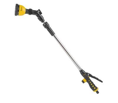 10 режимов работы: центральный, водяная пыль, душ, центральный + душ, жесткая струя, проливной дождь, плоская струя, под углом, круговая струя. Переключение режимов полива осуществляется путем поворота распылительной головки. Угол наклона регулируется на 180° Регулировка расхода воды Фиксатор для непрерывного полива Телескопическая рукоятка, максимальная длина 66 см
