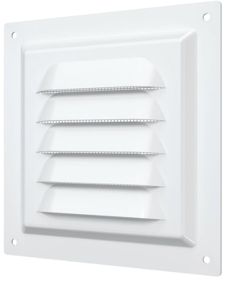 Решетка МЭ изготавливается из оцинкованной стали, которая покрывается полимерной эмалью. Имеет наклонные жалюзи.