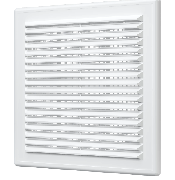 Вентиляционная решетка Р не крепится непосредственно к стене или к потолку, а вставляется в рамку, которая монтируется на поверхности. Это позволяет легко снимать изделие для обслуживания, надо лишь достать решетку из рамки, потом также легко вернуть на место. Антимоскитная сетка защищает от насекомых, а наклонные жалюзи помогают скрыть вентиляционный выход.