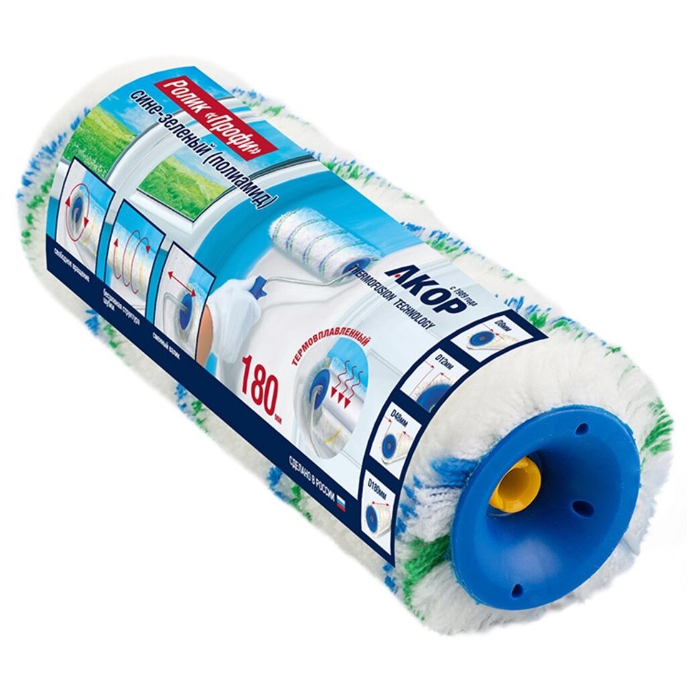 Ролик 180мм полиамид d 48 мм, бюгель 8 мм,ворс12,сине-зел.АКОР (60шт/уп)ВД ЛКМ 273 48 018