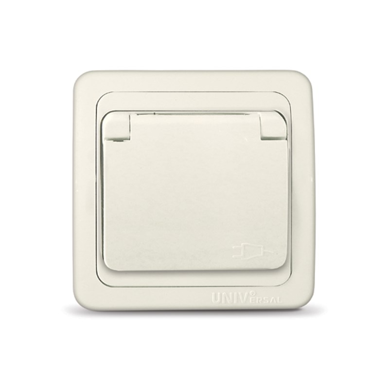 Розетка одноместная с крышкой "UNIVersal" серия "Валери" с/з, с/у, 16А, 220В, "слоновая кость" (ivor