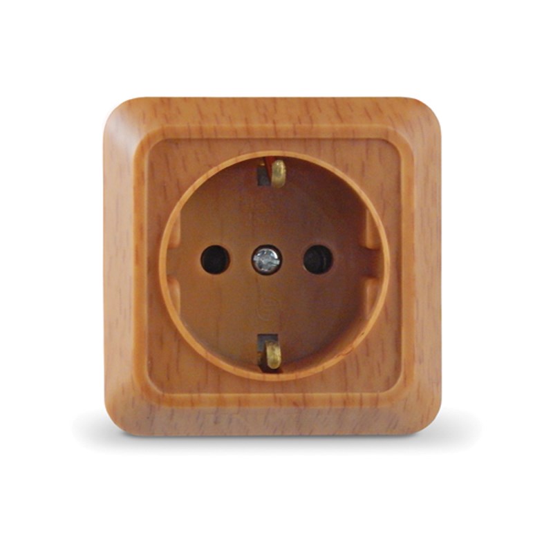 Розетка одноместная "UNIVersal" серия "Олимп" с/з, о/у, 16А, 220В, бук (еврослот)