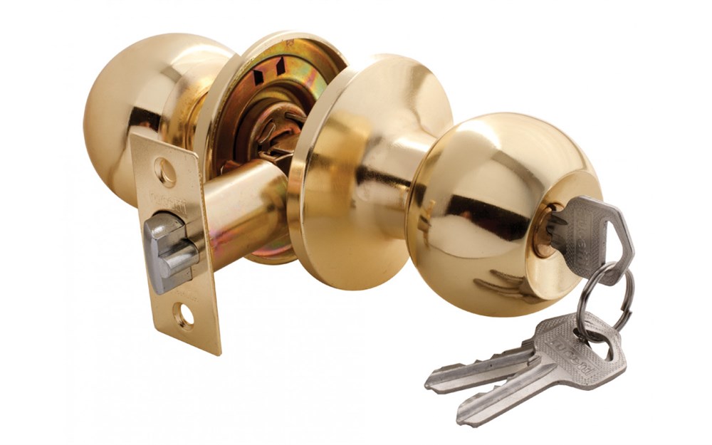 Ручка дверная( шар) цвет-золото ,комплект с механизмом ключ- фиксатор HK-01 L PG Rucetti