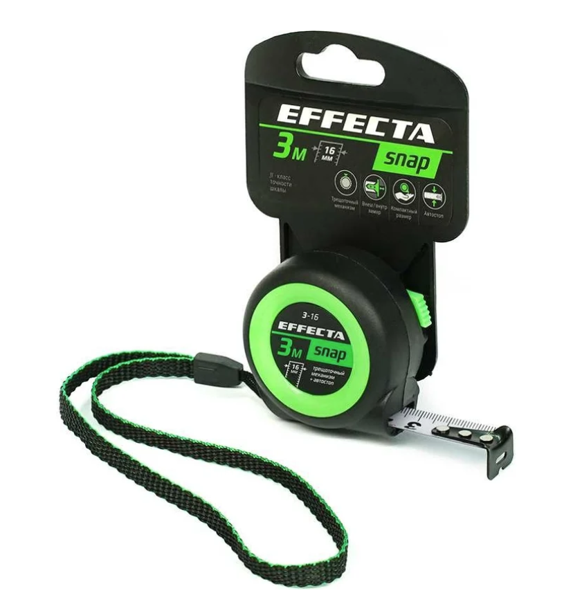 Рулетка 3мх16мм Fomeron "EFFECTA SNAP", автостоп, (12шт/уп)
