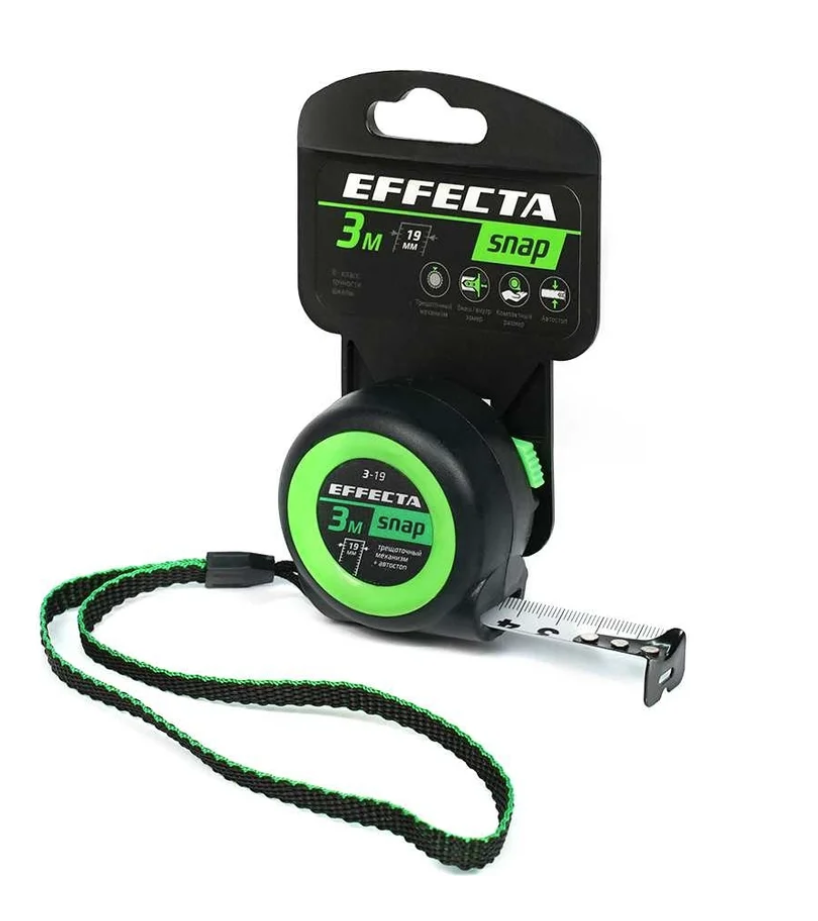Рулетка 3мх19мм Fomeron "EFFECTA SNAP", автостоп, (12шт/уп)